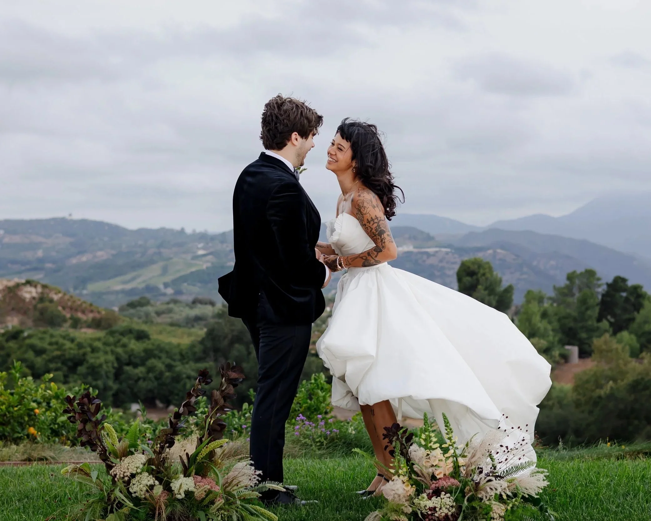 Whenever possible, I source from local farms and seasonal growers to ensure the freshest, most meaningful blooms. I blend California-grown florals with specialty stems that match your color palette and story.